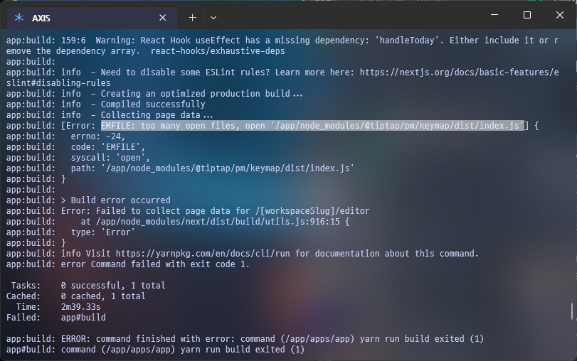 Next.js 기반 프로젝트를 Podman으로 빌드하다가 다음 오류가 발생하였다.
